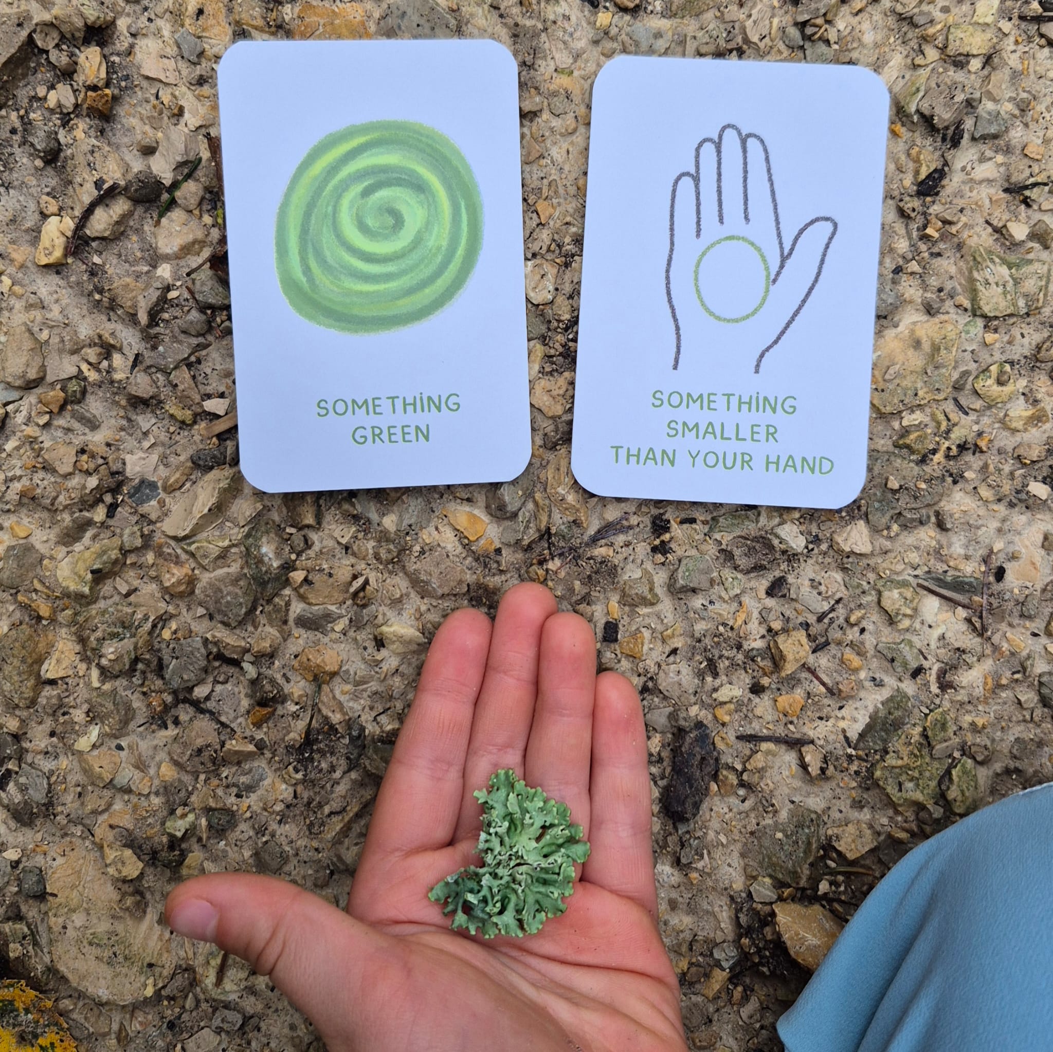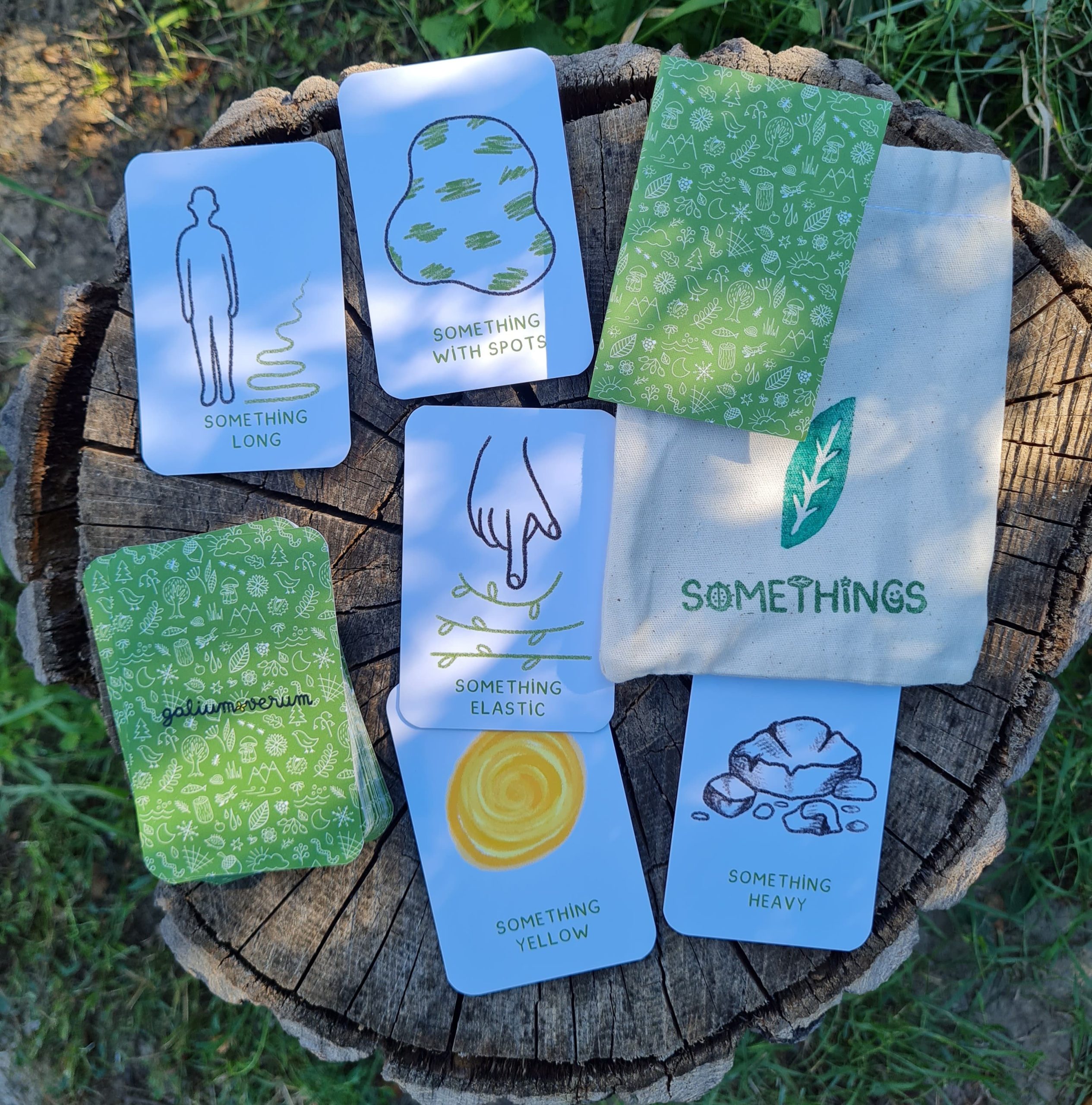 The EVERYWHERE edition encourages meaningful wandering, excitement, and learning both OUTSIDE and INSIDE. Search around until you find what the image on the card suggests. Or a mix of images. Or race against the clock. Or as a team. Or peacefully, alongside a toddler discovering various aspects of the world around them. On a hike. Or while waiting in a parking lot. Spontaneously, pulled from the car’s glove compartment or a backpack. During creative writing or art class. At daycare or school, during recess with the little ones. Or in team-building sessions. It comes with adaptability for different ages and contexts, embracing a minimalist and sustainable approach. Each play session can be unique, maintaining the interest and enthusiasm of participants—whether they are kids or adults.