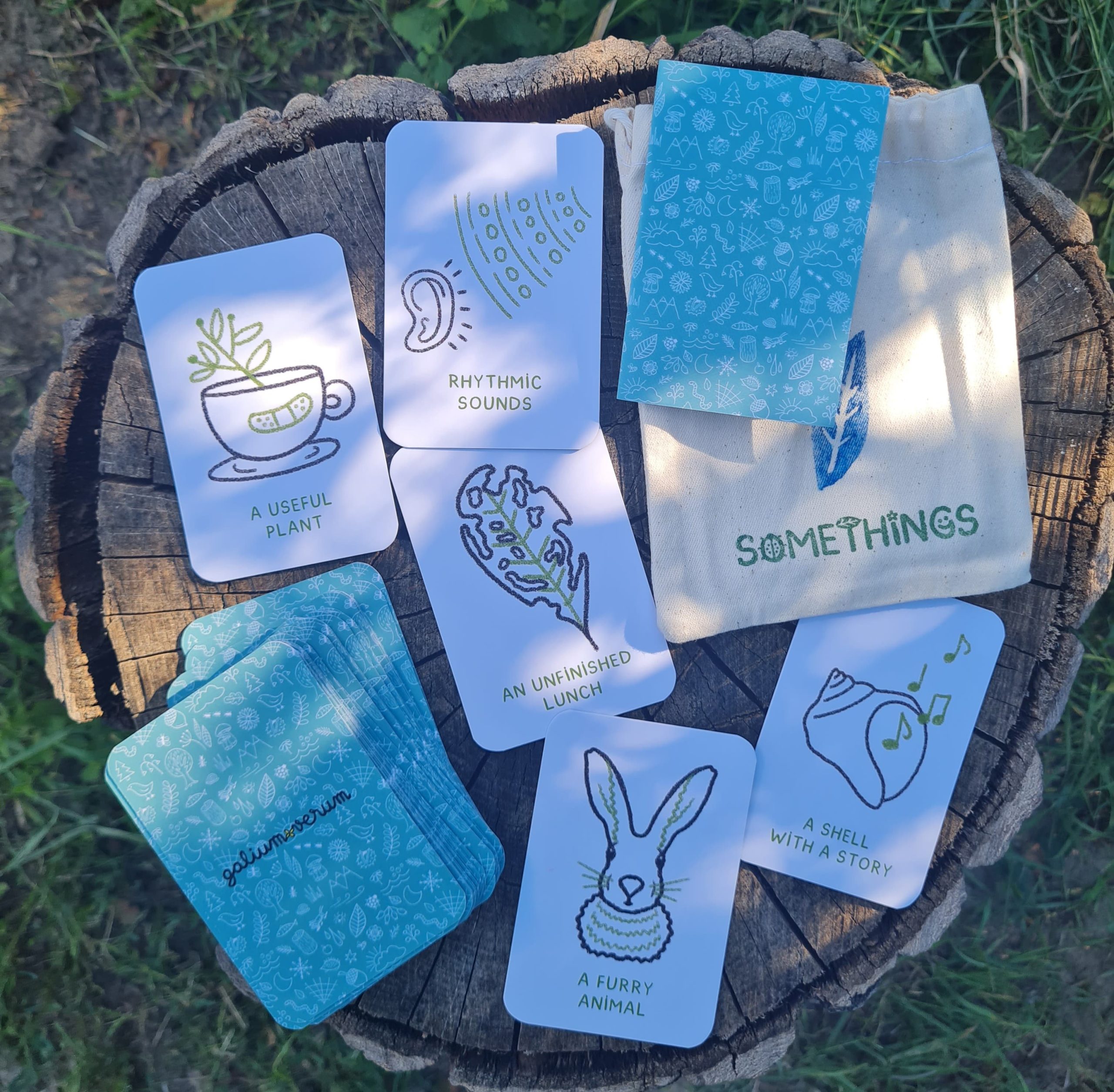 The NATURE edition encourages meaningful wandering, excitement, and learning specifically OUTDOORS. Search around until you find what the image on the card suggests. Or a mix of images. Or race against the clock. Or play as a team. Or calmly, alongside a toddler discovering various features of the surrounding world. Especially on a hike, where you’re likely to encounter many of the suggested elements. It can also be used during creative writing/art classes as an idea generator, on school trips, or in team-building activities. Adaptable to different ages and contexts, it embraces a minimalist and sustainable approach. Every nature walk is unique, maintaining the interest and enthusiasm of participants — both children and adults.
